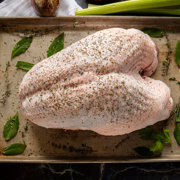 • Cut: Bone-In Turkey Breast (with skin and rib bone)