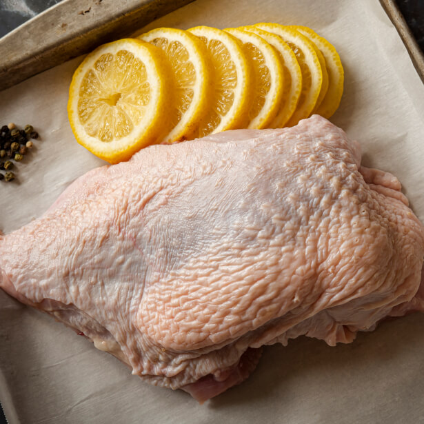 Our Boneless, Skin-On Turkey Breast gives you the best of both worlds—easy carving and prep, with all the flavor and crisp finish that comes from the skin. The boneless cut cooks a little quicker than bone-in, but still stays juicy and tender, making it a great choice for family meals or smaller gatherings.