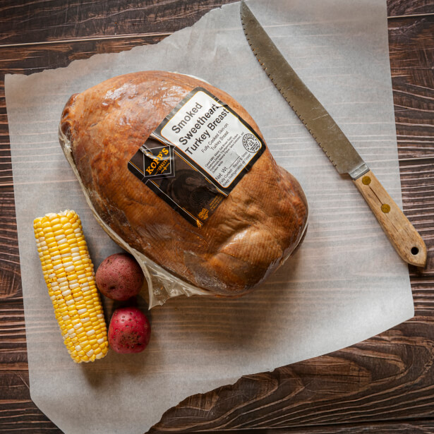 From our friends at Kuck Farms, our Smoked Sweetheart Turkey Breast is fully cooked and naturally smoked for rich, savory flavor in every bite. This smaller breast cut is tender, juicy, and perfectly seasoned.